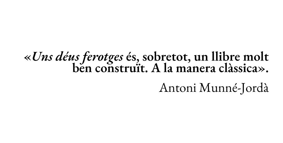 «Uns déus ferotges és, sobretot, un llibre molt ben construït. A la manera clàssica».